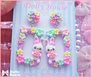Kawaii Marshmallow Bunny Earrings by Dolly House